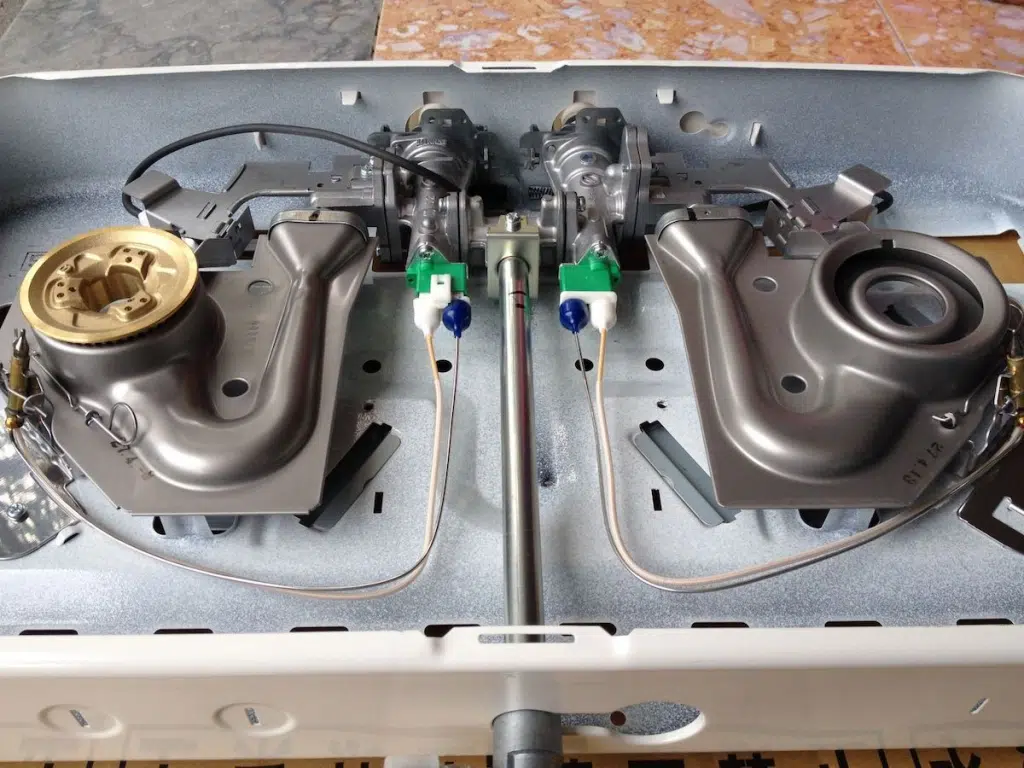 Mâm chia lửa của bếp gas dương Rinnai RTS – 2KD Mâm chia lửa của bếp được làm bằng Đồng, bộ chia lửa giúp cho ngọn lửa xanh và đẹp, tiết kiệm một lượng gas đáng kể trong quá trình nấu nướng. Bếp còn có chế độ tự động ngắt gas trong các trường hợp nguy hiểm ( nước trào, gió tạt…) Một tính năng được coi là nổi bật so với các dòng bếp gas dáng nhỏ.