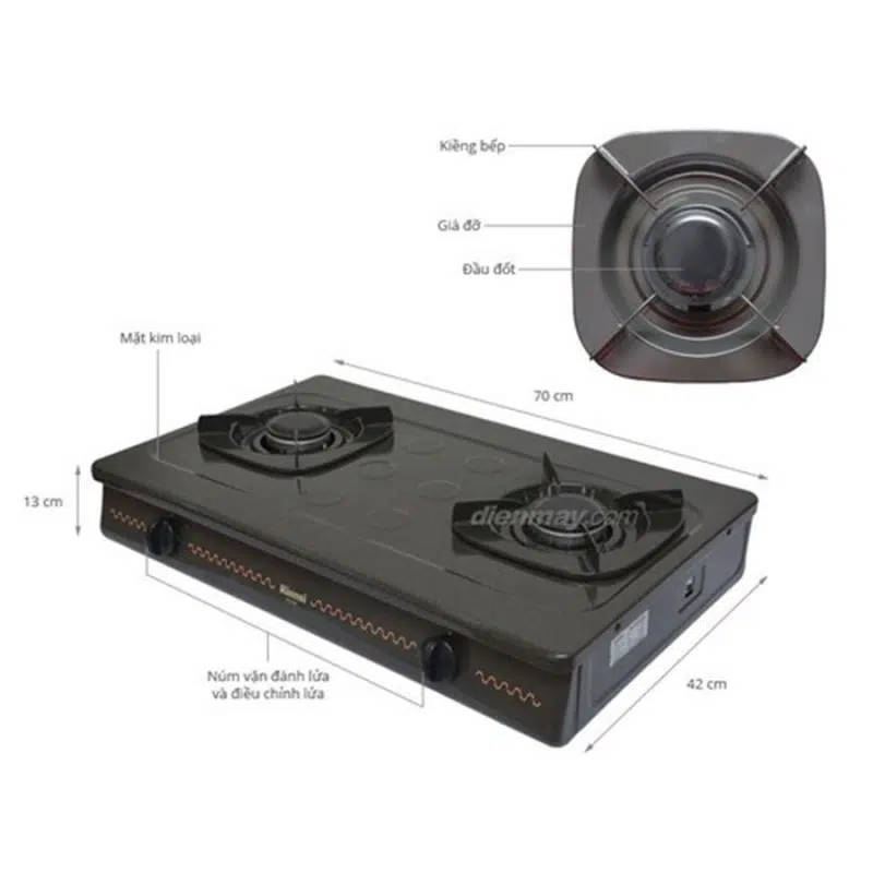 Chất liệu đầu đốt của bếp bằng gang tiết kiệm gas hiệu quả với lượng gas tiêu thụ chỉ 0.38kg/giờ/lò.