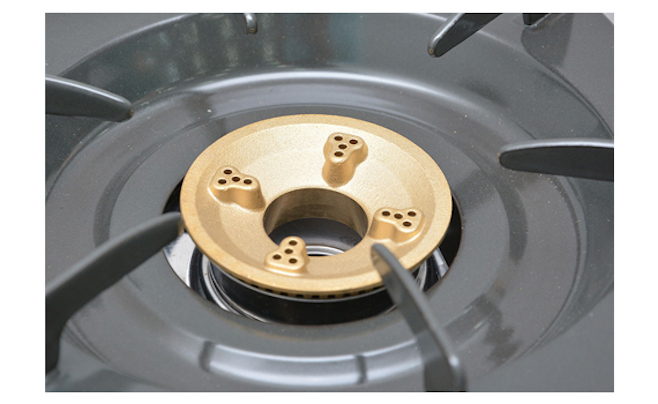 Bếp gas Rinnai RV-860GSB(M) sử dụng đồng thau nguyên chất để làm đầu đốt, điều này làm ngọn lửa có màu xanh đều màu, tập trung hơn.