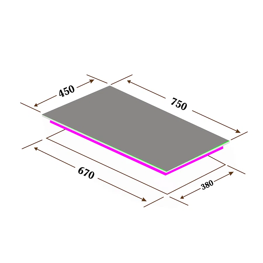 - Bếp được thiết kế đẹp mắt với 2 vùng nấu phân bố khoảng cách khoa học, tiện dụng khi đặt nồi nấu