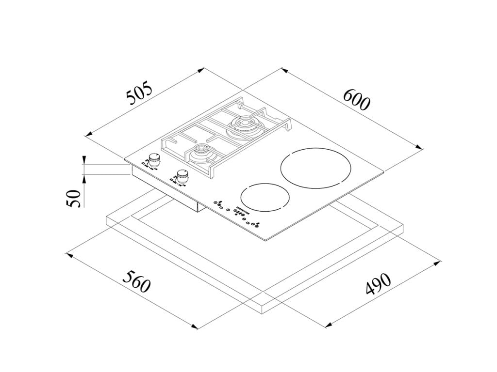 Bếp kết hợp gas – từ Dudoff London Grani Z0202