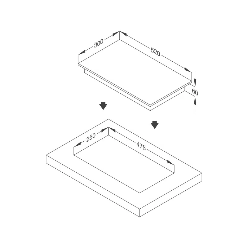 Kích thước bếp: W300 x D520 x H60mm