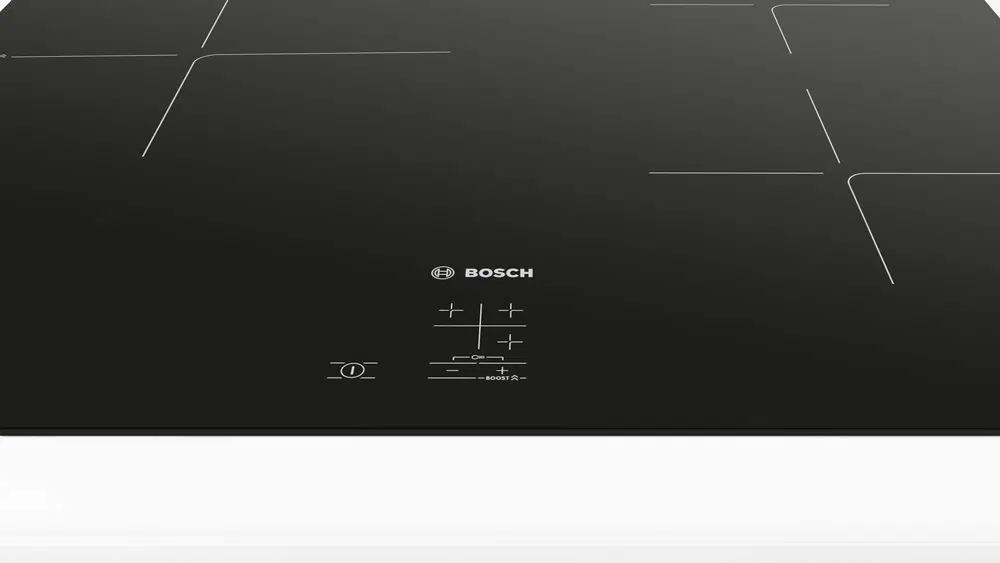 Màu đen sang trọng, thiết kế tinh tế, mang lại sự sang trọng và hiện đại trong căn bếp của bạn với bếp từ ba Bosch PUC61KAA5E.
