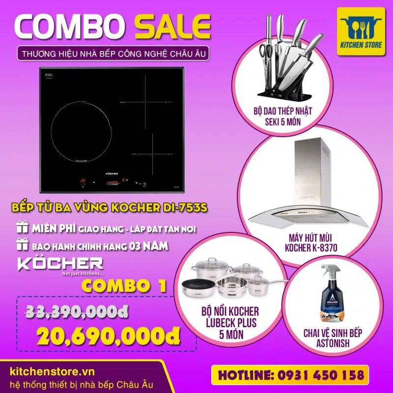 Bếp từ ba Kocher DI-750S thân thiện với môi trường và người dùng