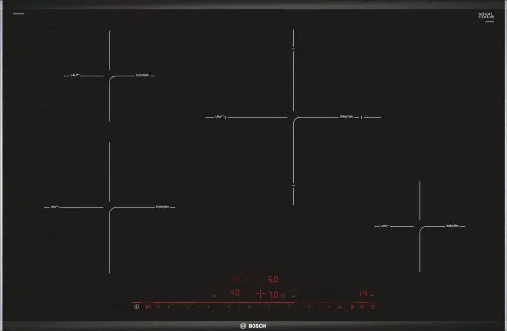 Bếp từ Bosch PIE875DC1E được thiết kế vùng nấu siêu lớn với 4 khu vực nấu, trang bị chức năng cảm ứng và Sprint cho từng khu vực: 1 vùng nấu lớn với kích thước 28cm, 1 vùng 21 cm; 2 vùng 15 cm. Thiết kế này tối ưu khả năng nấu nướng của bạn, khiến việc sắp xếp nấu ăn trở nên tiện lợi và tiết kiệm thời gian tối đa.