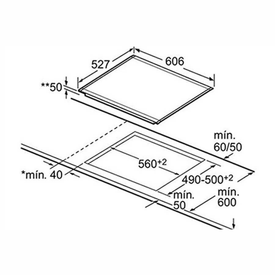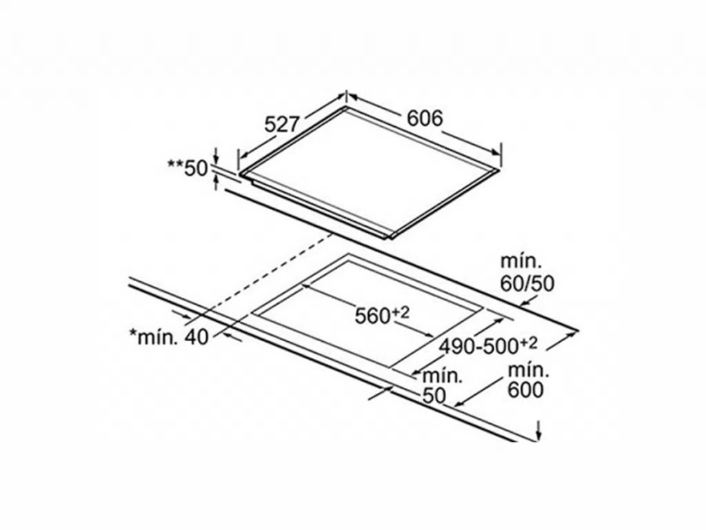 - Bếp nấu 1 (vùng nấu kép) vùng cảm ứng Flex: với 2 vùng cảm ứng 480cm2, công suất đạt 3.3 kW