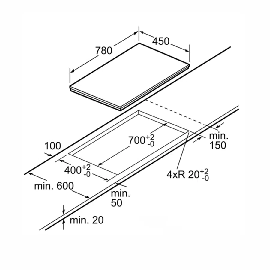 Mặt trước và mặt sau Bếp từ Bosch được thiết kế vát cạnh, hai bên viền bo nhôm. Mặt Bosch PPI82560MS làm bằng kính Schott Ceran cao cấp, chống xước, có khả năng chịu nhiệt vượt bậc, chịu được lực tác động và chống sốc nhiệt đến 750 độ C.