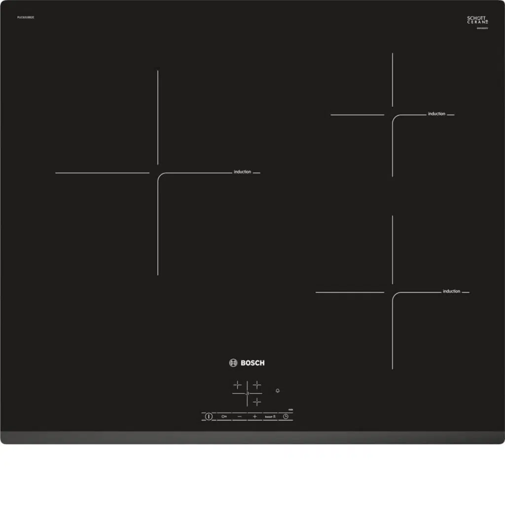 Màu đen sang trọng, thiết kế tinh tế, mang lại sự sang trọng và hiện đại trong căn bếp của bạn với bếp từ ba Bosch PUC631BB2E.