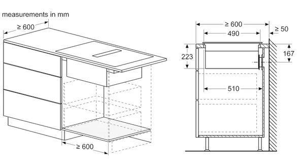 ‣ Bề mặt bếp bằng gốm thủy tinh Schott, vát cạnh trước.