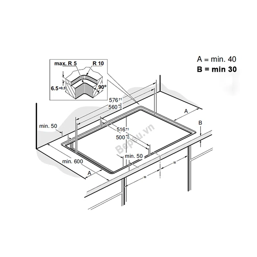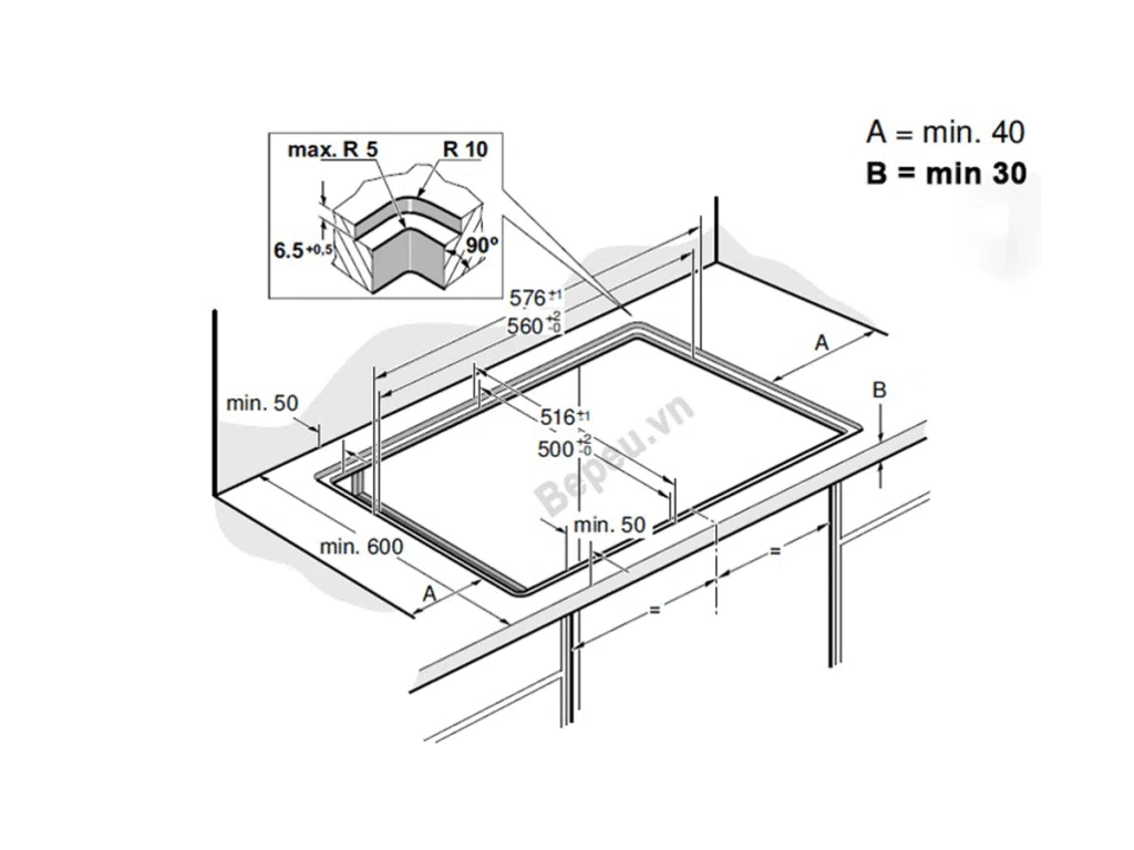 Có thể kết hợp thành 2 vùng nấu từ 400×230 mm 3.3 KW (max. 3.7 KW)