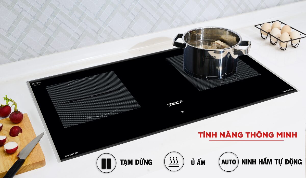 Với linh kiện được nhập khẩu chính hãng E.G.O – Made in Germany, khách hàng sử dụng bếp từ Chef’s EH-DIH666 luôn an tâm về chất lượng sản phẩm. Bếp được ứng dụng công nghệ Inverter thông minh vượt trội, giúp tiết kiệm điện năng tới 30%.