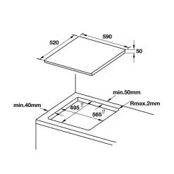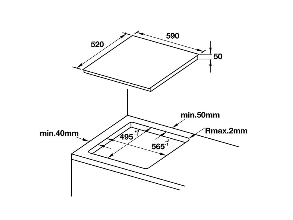 - Kích thước hộc bếp: 565R x 495S mm