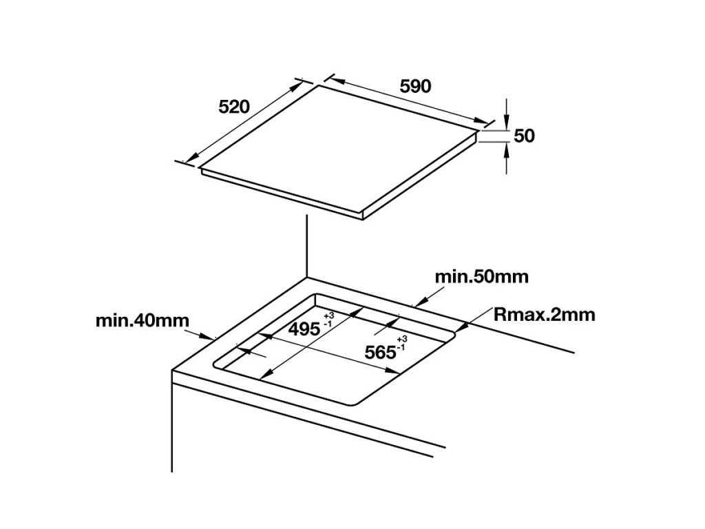 • Mặt gốm thủy tinh SCHOTT, vát 4 cạnh