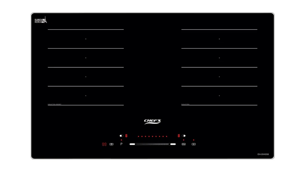 2 vùng nấu của bếp từ Chef’s EH-DIH208 được biểu thị bằng 5 đường kẻ ngang song song, tạo nên điểm khác biệt và độc đáo cho bếp.