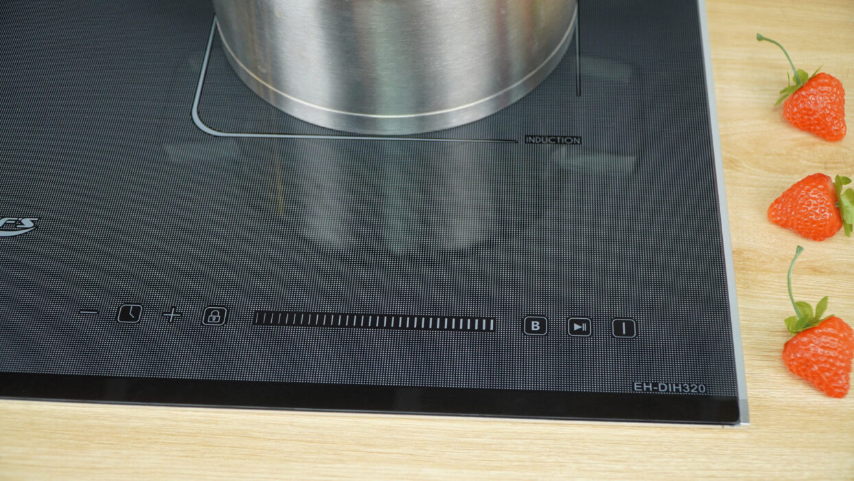 Bảng điều khiển cảm ứng dạng trượt slide, với các phím chức năng có các biểu tượng đơn giản, dễ dàng thao tác, kể cả với người lớn tuổi. EH-DIH320 sử dụng 2 bảng điều khiển riêng biệt cho 2 vùng nấu.