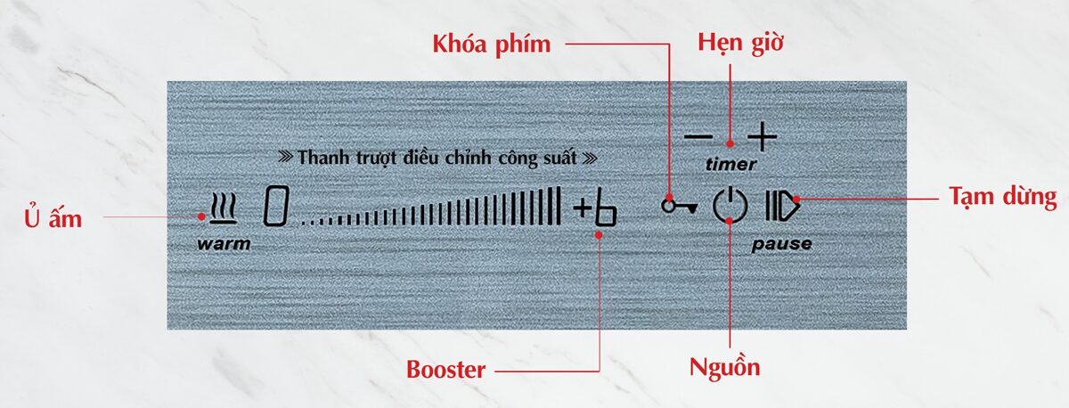 Bếp được điều khiển bằng dạng trượt slide, bàn phím siêu nhạy kể cả khi tay ướt.