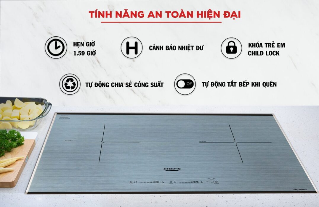 Bếp từ Inverter Chef’s EH-DIH888E được trang bị nhiều tính năng hiện đại, đảm bảo an toàn cho bếp và cả người dùng trong quá trình sử dụng.