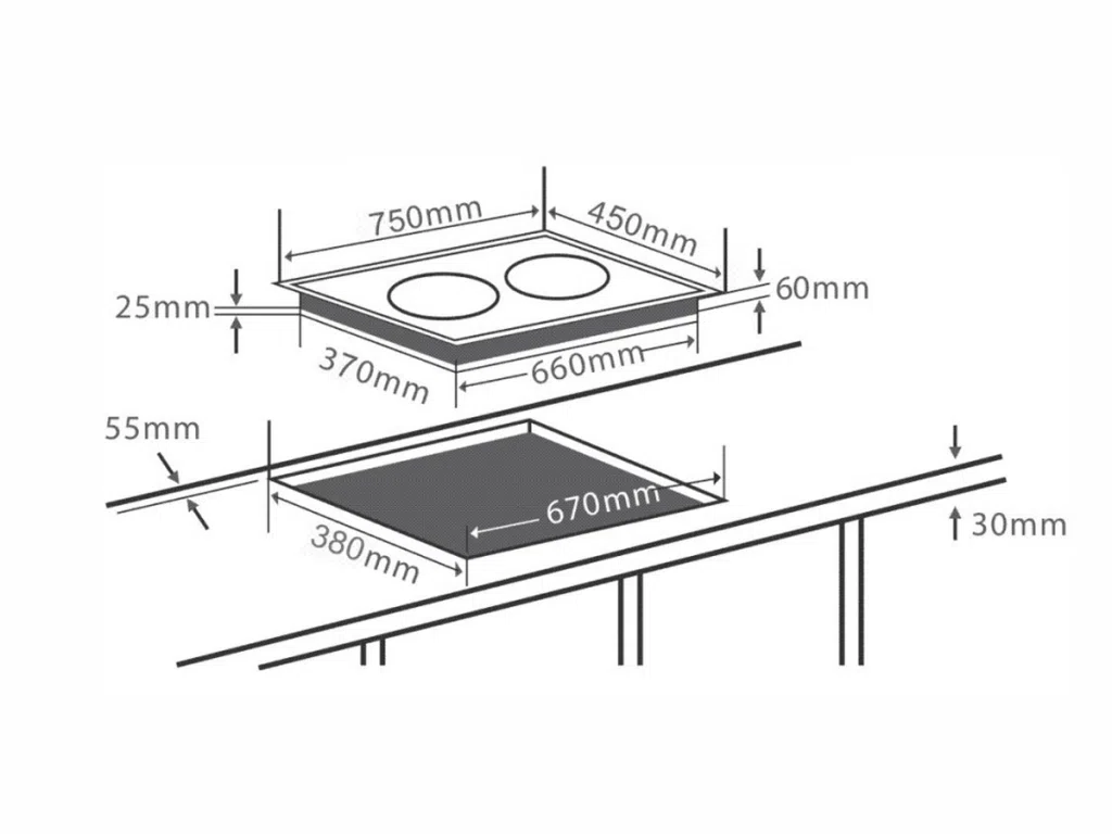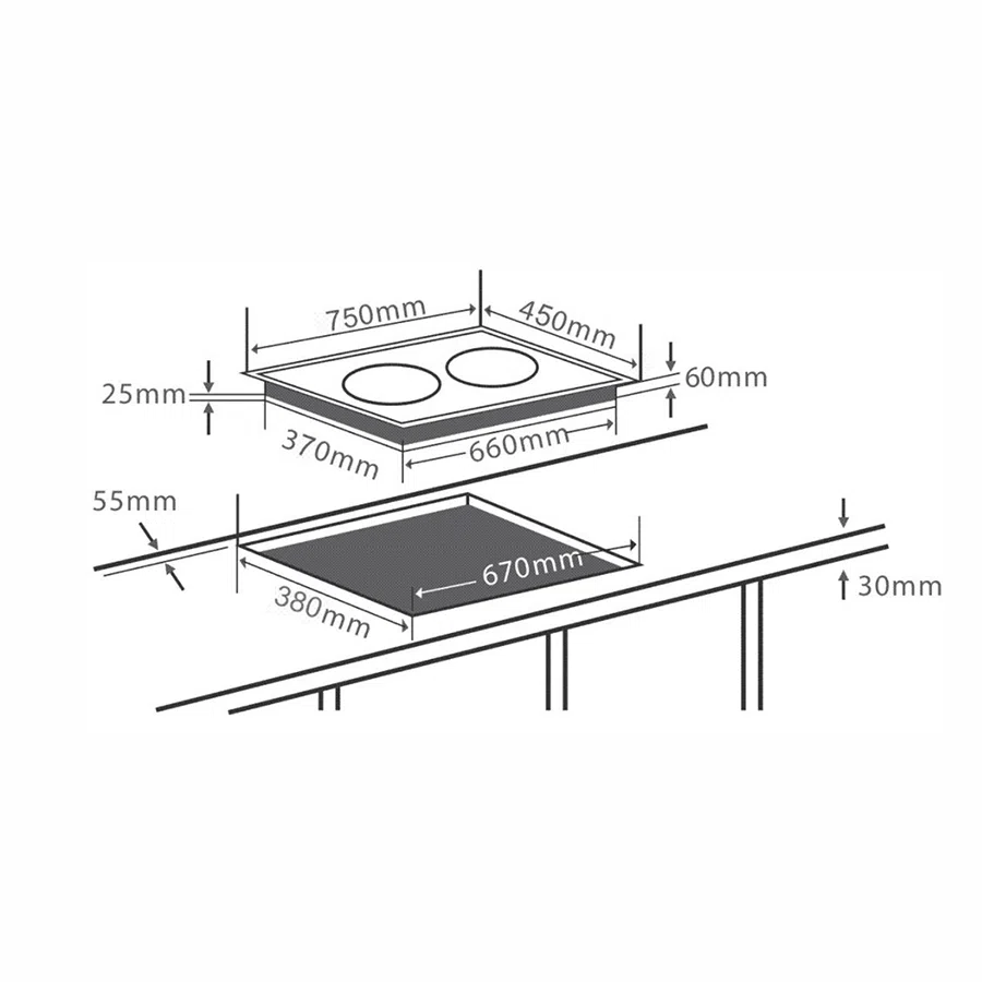 - Bếp được thiết kế đẹp mắt với 2 vùng nấu phân bố khoảng cách khoa học, tiện dụng khi đặt nồi nấu.