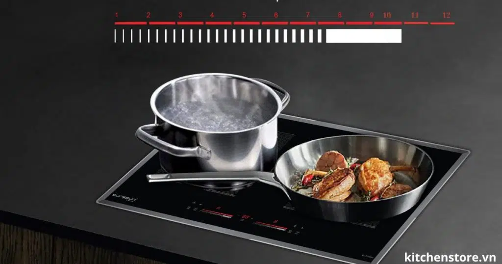 Khi một vùng nấu hoạt động ở mức công suất cao. Các vùng nấu còn lại sẽ tự động điều chỉnh giảm để đảm bảo tổng công suất bếp không vượt quá 3600W. Bảo vệ cho các thiết bị điện khác trong gia đình không bị quá tải đường dây.