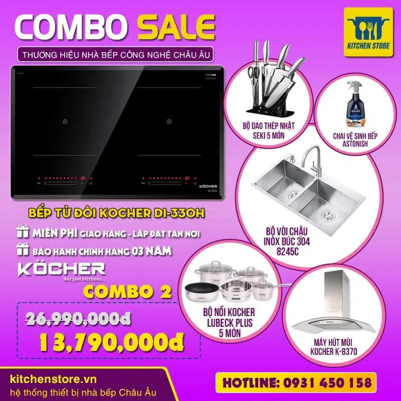 Bếp từ đôi Kocher DI-330H được lắp rắp tại Việt Nam, thiết kế hiện đại, đem lại sự sang trọng cho căn bếp nhà bạn.