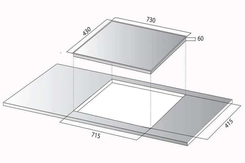 - Kích thước hộc bếp: 710R x 410S mm