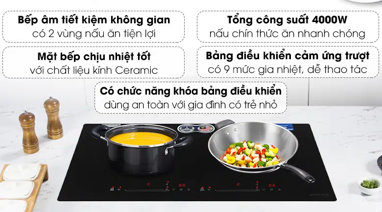 - Điều khiển: cảm ứng, 9 mức gia nhiệt
