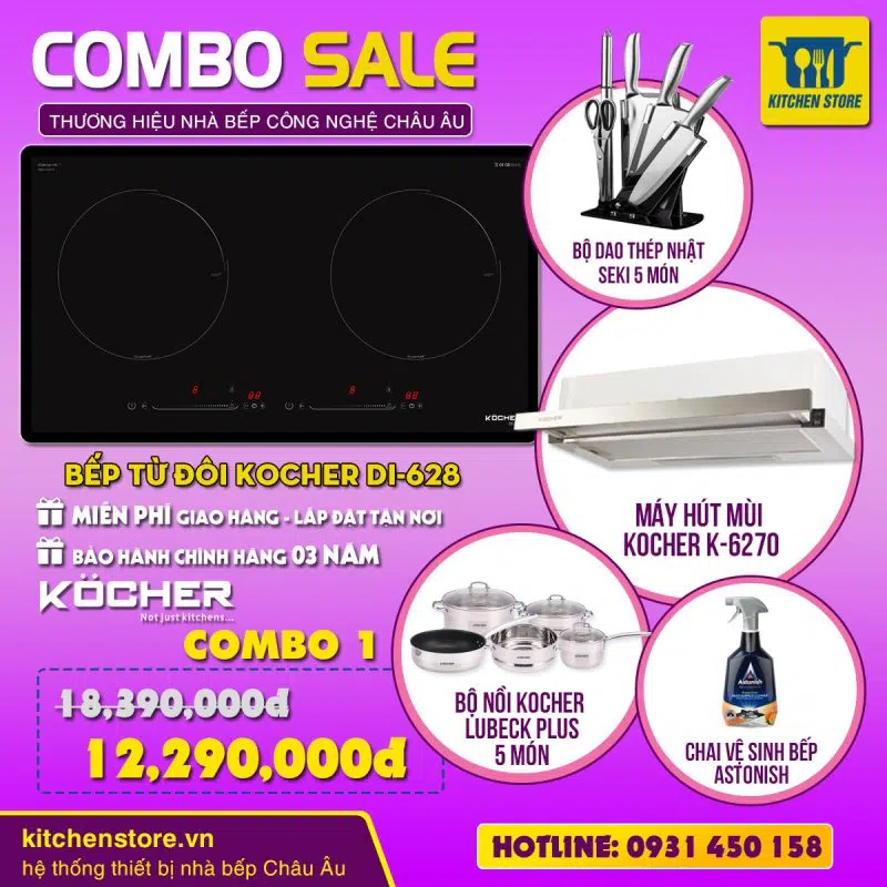 Thông tin kỹ thuật bếp từ đôi Kocher DI-628