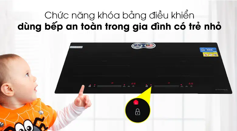 - Khóa trẻ em (không sử dụng được bếp khi khóa)