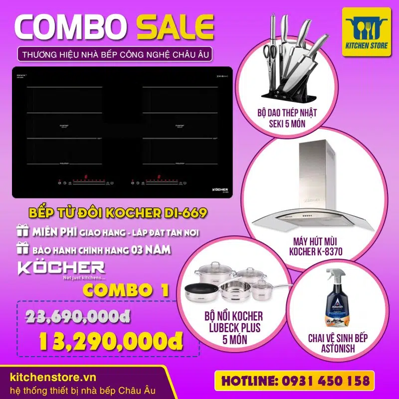Bếp từ đôi Kocher DI-669 được nhập khẩu nguyên máy từ Việt Nam, thiết kế hiện đại, đem lại sự sang trọng cho căn bếp nhà bạn.
