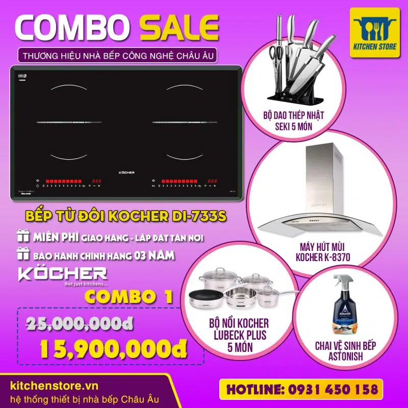 Bếp từ đôi Kocher DI-733S đang được lắp rắp tại Việt Nam với thiết kế bắt mắt, sang trọng và hiện đại đặc biệt sản phẩm sở hữu nhiều chức năng mới hỗ trợ người dùng trong quá trình nấu ăn.