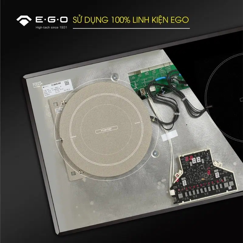 Bên ngoài vỏ bếp có lớp sơn cách điện, linh kiện cấu tạo sử dụng 100% linh kiện tập đoàn EGO (Đức). Bếp từ đôi Kocher DI-801GE IPlus có hệ thống điều khiển Slide cảm ứng dạng ẩn nhanh nhạy, tinh tế, hiển thị rõ các tính năng hiện đại, tiện dụng hơn cho người dùng.