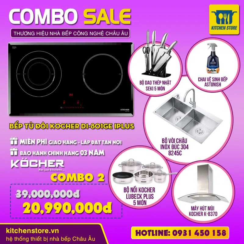 Bếp từ đôi Kocher DI-801GE IPlus được nhập khẩu nguyên chiếc từ Đức về thị trường Việt Nam đang được người dùng ưa chuộng với thiết kế bắt mắt, sang trọng và hiện đại đặc biệt sản phẩm sở hữu nhiều chức năng mới hỗ trợ người dùng trong quá trình nấu ăn.