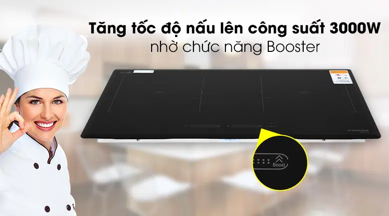 Mang những ưu điểm của dòng bếp từ cao cấp, bếp từ đôi Kocher DIB4-888 Plus ghi điểm với hiệu suất làm việc cao, nấu nướng nhanh, hiệu quả: chức năng Booster lên đến 3.0KW tăng cường nhiệt lượng, nấu nướng siêu nhanh với 9 mức điều chỉnh công suất, hỗ trợ đun nấu nhanh hơn, rút ngắn thời gian tiêu thụ điện.