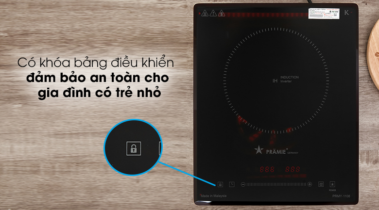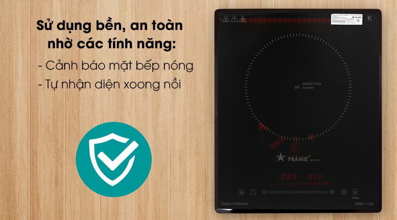 Hỗ trợ các tính năng tiện ích và an toàn giúp kéo dài tuổi thọ bếp từ đơn Pramie.