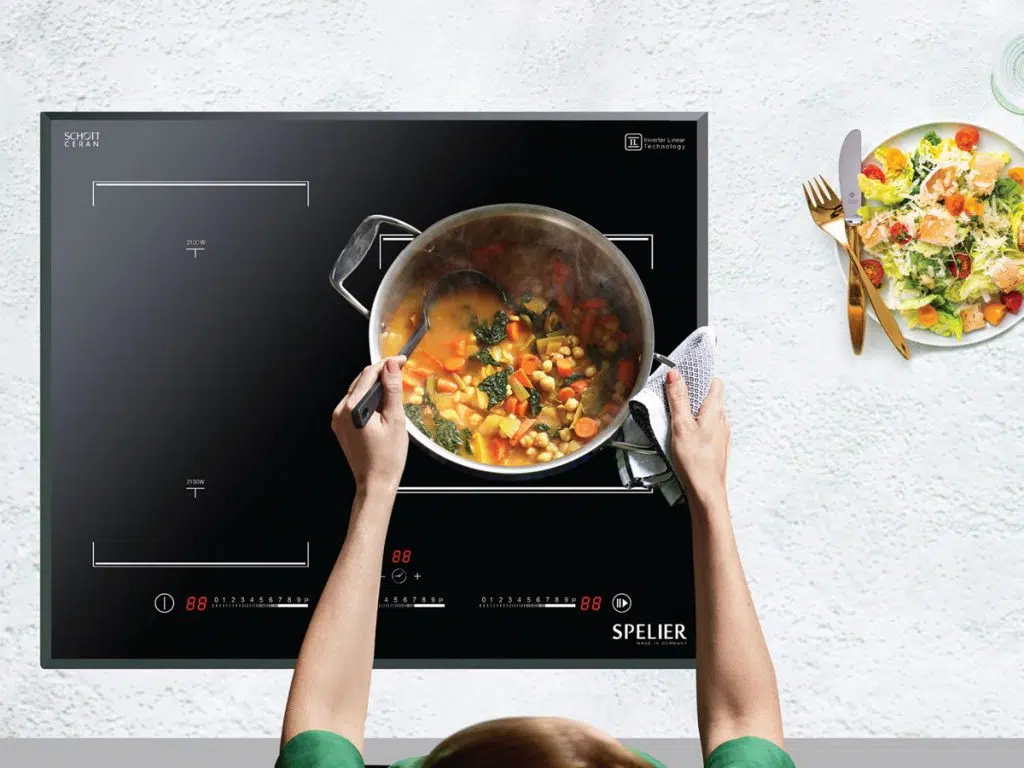 - 2 vùng nấu cảm ứng từ công suất 2100 W – Booster lên 3700 W