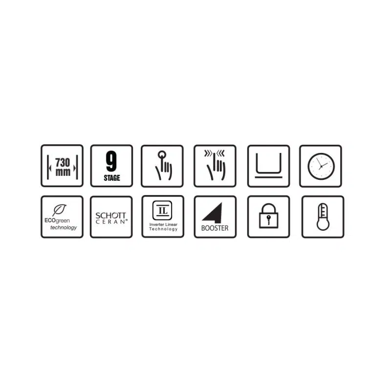 - Mặt kính SCHOTT CERAN® Made in Germany, in hai màu độc đáo, bo viền