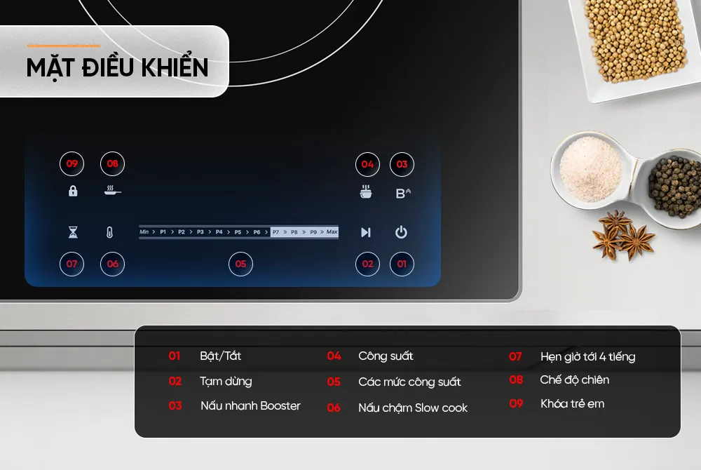 Chức năng nấu nhanh – BOOSTER giúp bếp đẩy lên mức công suất cực đại nhanh nhất, giúp gia nhiệt nhanh chóng và cho hiệu suất hoạt động lên đến 90% so với các bếp từ thông thường. Chức năng Booster cho phép tăng công suất lên mức cao nhất trong thời gian ngắn, giúp nhiệt độ tăng nhanh chóng và nấu nướng được thực hiện một cách hiệu quả. Điều này giúp tiết kiệm thời gian và làm việc nhanh hơn trong bếp.