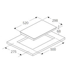 – Vùng sau: Ø220 mm – 2.3/3.0 KW (gia nhiệt nhanh) - Mặt gốm thủy tinh SCHOTT, vát 2 cạnh (trước và sau)