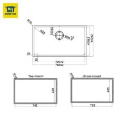 - Topmount/Undermount: Chậu rửa được trang bị 2 bộ