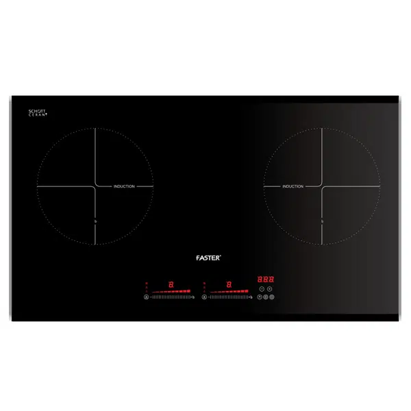 Bếp Từ Đôi Faster FS 741G được nhập nguyên chiếc thiết kế đặt âm với 2 vùng nấu từ. Bếp sử dụng mặt kính Schott Ceran của Đức được vát cạnh 8mm cực kì sang trọng.