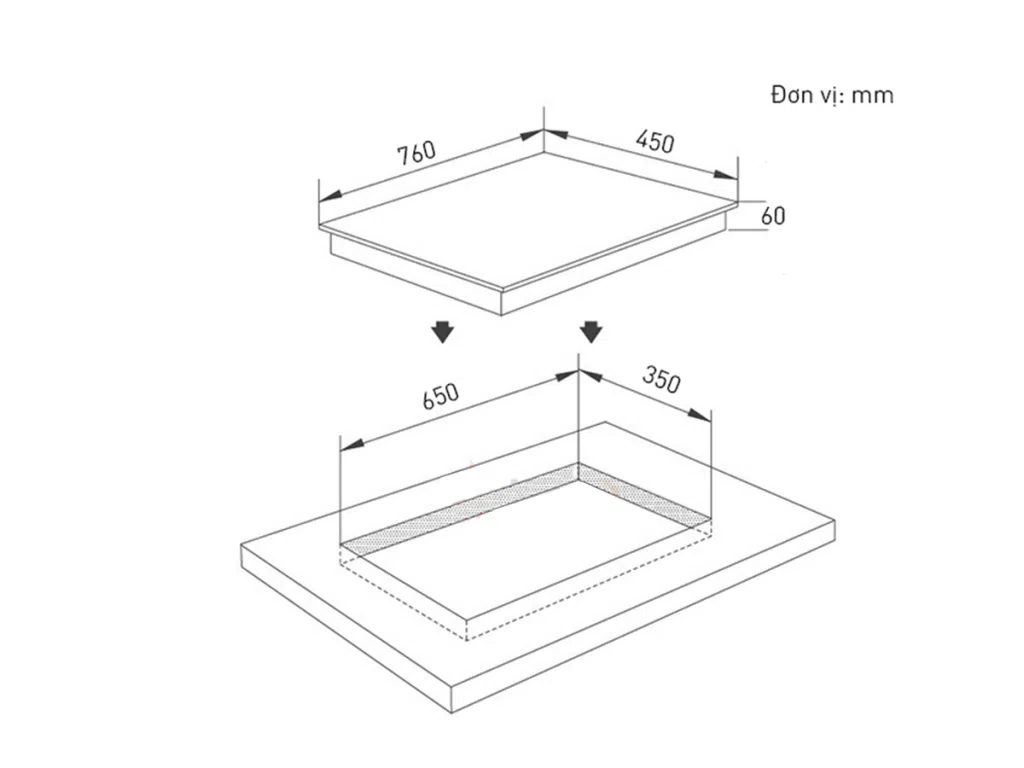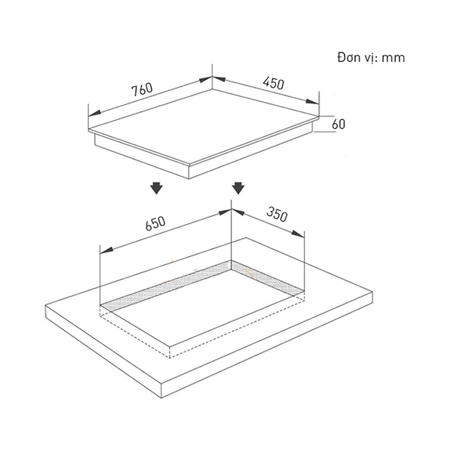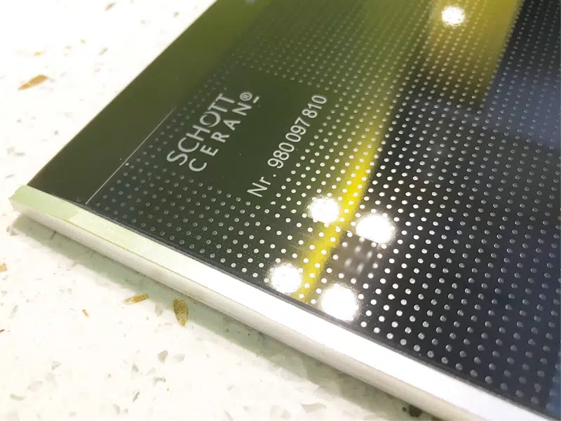 Đây là mặt kính chuyên dụng dành cho bếp điện từ, là một loại kính có chất lượng cao, rất cứng, bền và có nhiều đặc điểm nổi trội như: khả năng chịu nhiệt, khả năng chống trầy xước và chống va đập …. Mặt kính gồm các thấu kính hội tụ, truyền nhiệt từ bếp lên đáy nồi theo phương thẳng đứng, không thất thoát nhiệt ra môi trường. Mặt kính màu xám liền nguyên khối, an toàn, thẩm mỹ và tiện trong việc vệ sinh, lau chùi.
