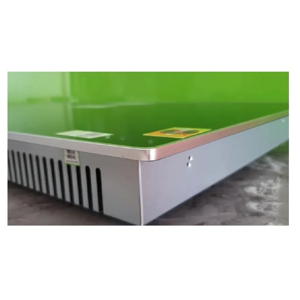 Đây là mặt kính chuyên dụng dành cho bếp điện từ, là một loại kính có chất lượng cao, rất cứng, bền và có nhiều đặc điểm nổi trội như: khả năng chịu nhiệt , khả năng chống trầy xước và chống va đập …. Mặt kính gồm các thấu kính hội tụ, truyền nhiệt từ bếp lên đáy nồi theo phương thẳng đứng, không thất thoát nhiệt ra môi trường. Mặt kính màu xám liền nguyên khối, an toàn, thẩm mỹ và tiện trong việc vệ sinh, lau chùi.