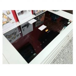 Đây là mặt kính chuyên dụng dành cho bếp điện từ, là một loại kính có chất lượng cao, rất cứng, bền và có nhiều đặc điểm nổi trội như: khả năng chịu nhiệt, khả năng chống trầy xước và chống va đập …. Mặt kính gồm các thấu kính hội tụ, truyền nhiệt từ bếp lên đáy nồi theo phương thẳng đứng, không thất thoát nhiệt ra môi trường. Mặt kính màu xám liền nguyên khối, an toàn, thẩm mỹ và tiện trong việc vệ sinh, lau chùi.