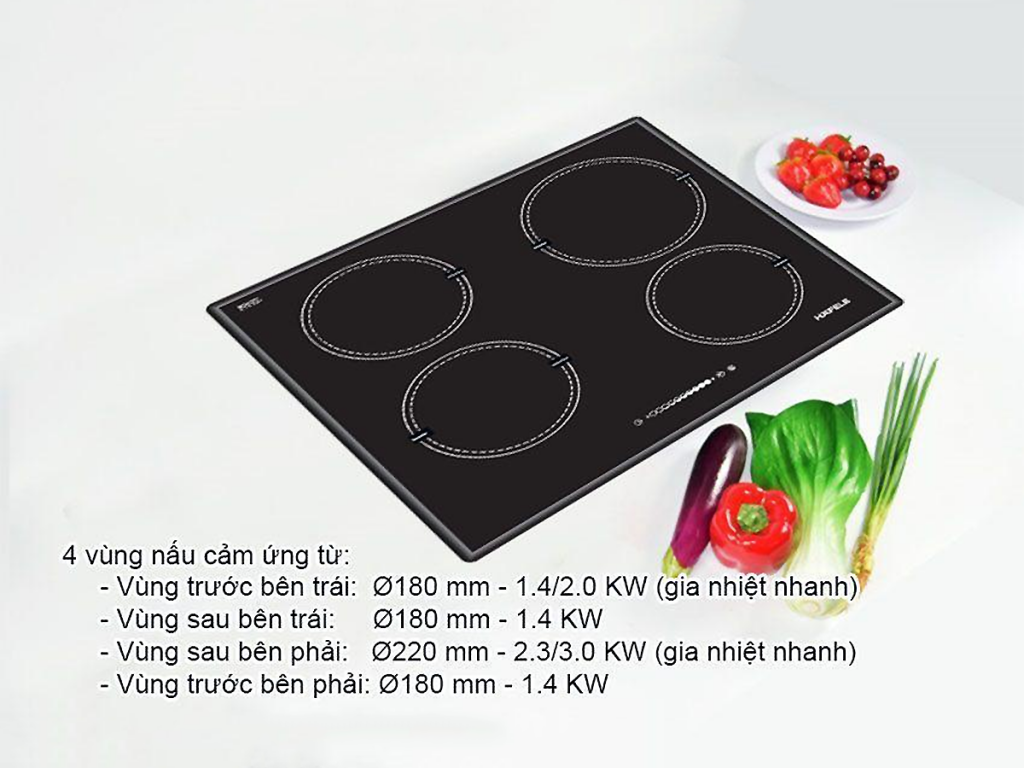 – Vùng trước bên trái: Ø180 mm – 1.4/2.0 KW (gia nhiệt nhanh)