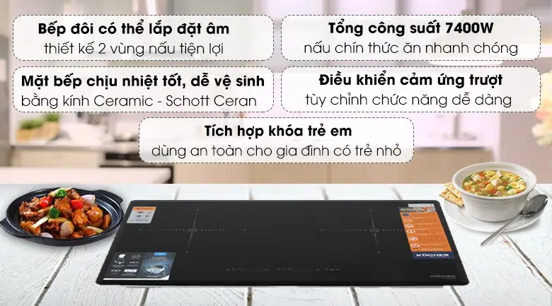 Ưu điểm trong thiết kế, tính năng bếp từ đôi Kocher DI-806GE02