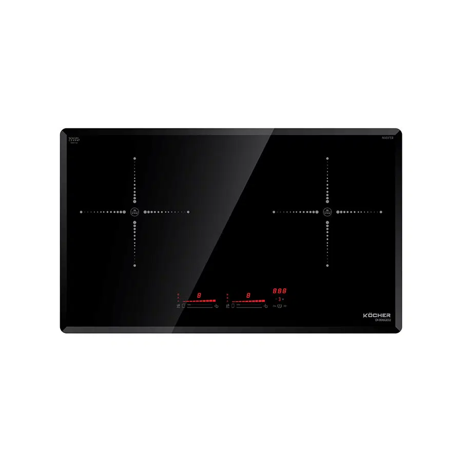 Bếp từ Kocher DI-806GE02 thuộc dòng bếp từ đôi nhập khẩu từ Đức, sản phẩm có thiết kế chữ nhật liền nguyên khối, thiết kế vát cạnh xung quanh đẹp mắt, sử dụng mặt kính Schott Ceran (Đức) có khả năng chịu nhiệt lên đến 1000 độ C, chịu lực lên đến 15kg. Mặt kính chống trầy xước, có khả năng chống bám bụi, dễ dàng vệ sinh sau mỗi lần sử dụng. Thân bếp được làm bằng thép không gỉ, quạt tản nhiệt hoạt động linh hoạt, giúp đẩy nhanh lượng nhiệt nóng phát sinh trong quá trình nấu nướng.