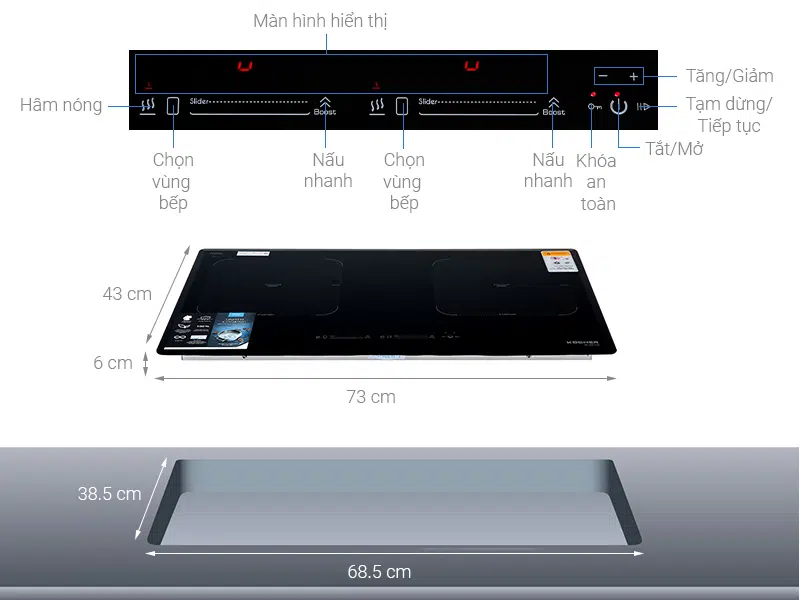 Ưu điểm trong thiết kế, tính năng bếp từ đôi Kocher DI-881GE