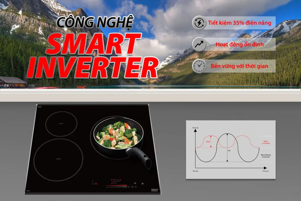Bếp từ Lorca tích hợp công nghệ biến tần Smart Inverter tiết kiệm lên tới trên 35% điện năng tiêu thụ, giúp bếp đun nấu duy trì ổn định công suất khi đun nấu, với khả năng đun liu riu ở các mức công suất thấp, giữ cho bếp gia nhiệt duy trì ổn định, không bị đóng ngắt liên tục như các dòng bếp thông thường.
