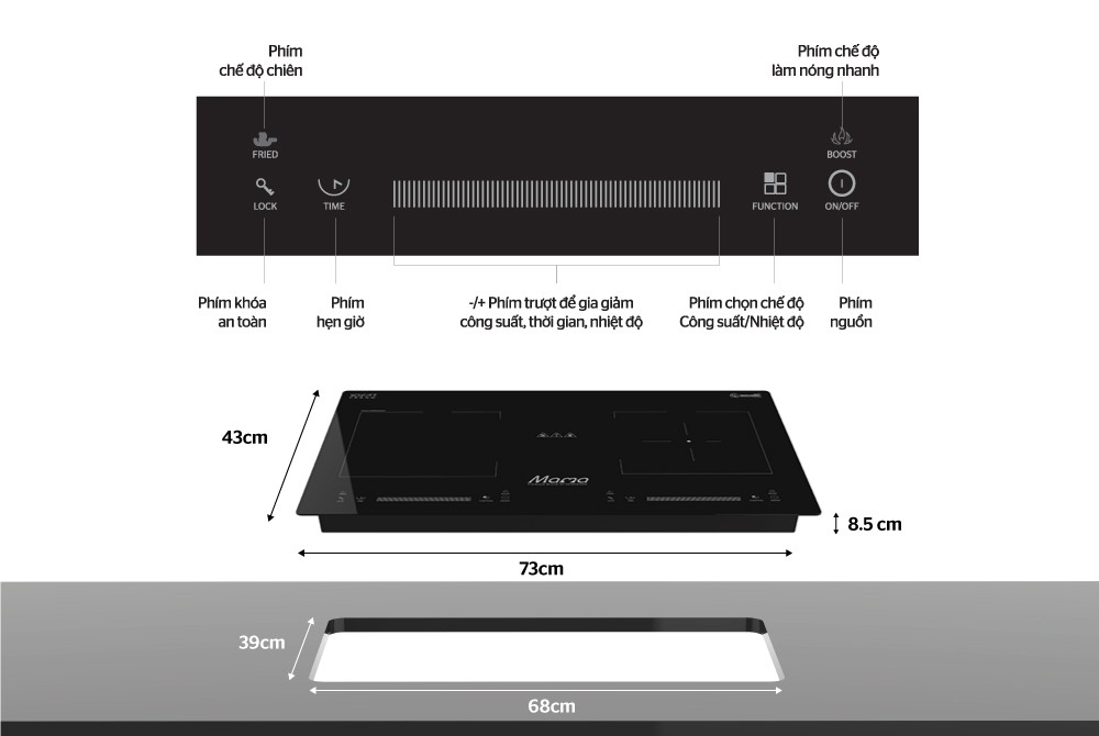 Kích thước sản phẩm 730 x 430 x 85 mm