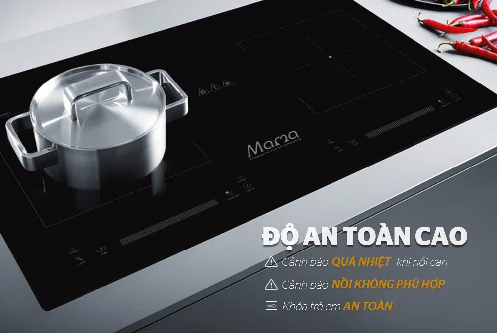 Bếp đôi điện từ SUNHOUSE MAMA MMB9208DIH được trang bị nhiều tính năng an toàn hiện đại như hẹn giờ, khóa trẻ em mang đến trải nghiệm nấu ăn hoàn toàn khác biệt so với các mẫu bếp truyền thống.